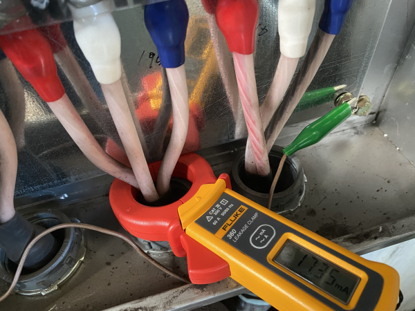 차단기실에 도착해서 비슷한 굵기의 전선이 연결된 차단기들의 누설전류를 측정하였더니 대부분 0 이었다가 17.3mA 가 흐르는 전선을 발견하였다.
