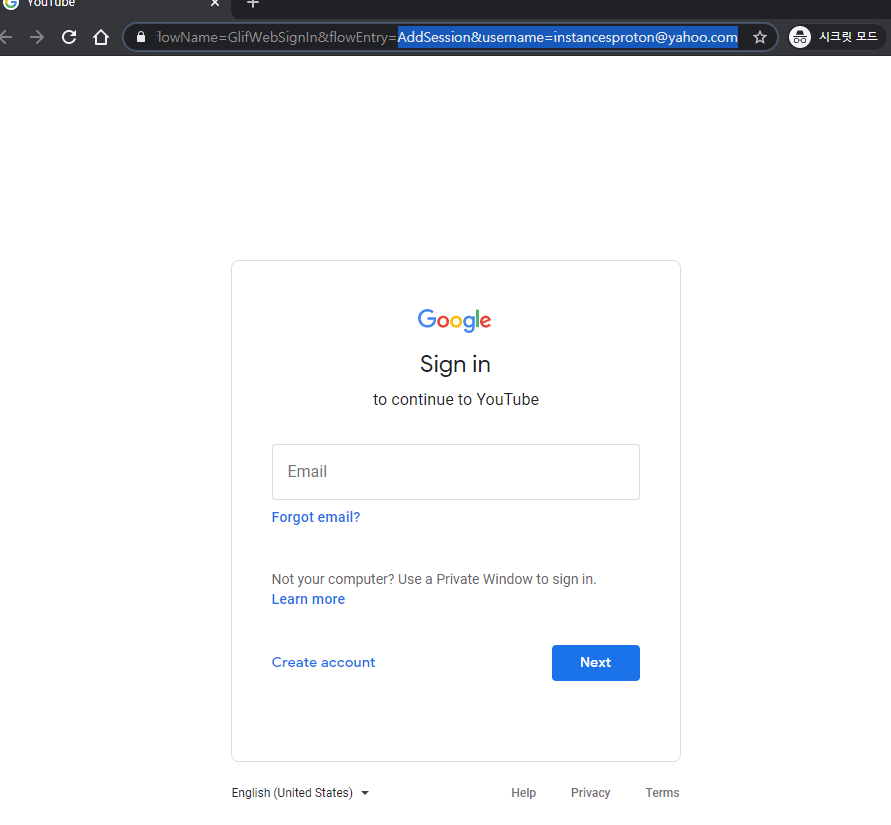 역시나 링크를 클릭하면 instancesproton@yahoo.com 를 사용자로 추가하는 링크인듯 하다.
