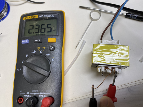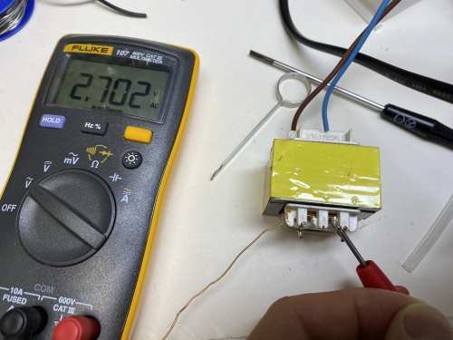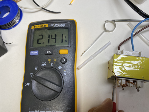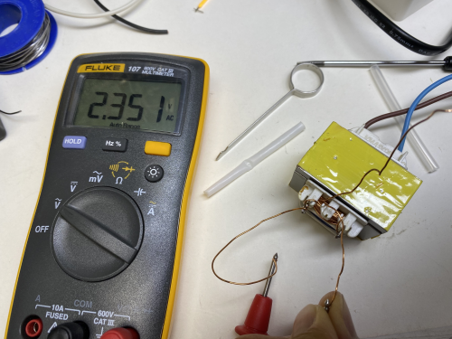 10여회 정도 더 풀었더니 2.7V 가 되었다. 그래서 3바퀴를 더 풀었더니 필요한 전압인 2.3V 정도가 되어서 2차측 권선 풀기작업을 마무리지었다.