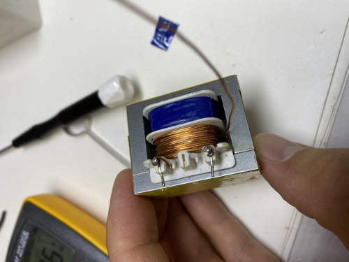 풀어두었던 에나멜선을 이용하여 2차측에 다시 권선을 감아주었다.