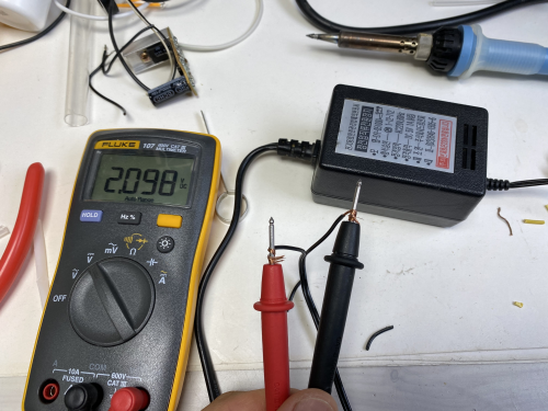 어댑터의 케이스를 조립한 후, 전압을 측정해 보니 2.098V 가 측정된다.