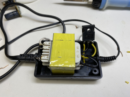 1차측에 220V 전선을 연결해 준 다음 기존 어댑터의 케이스를 이용하여 수납을 한다.
