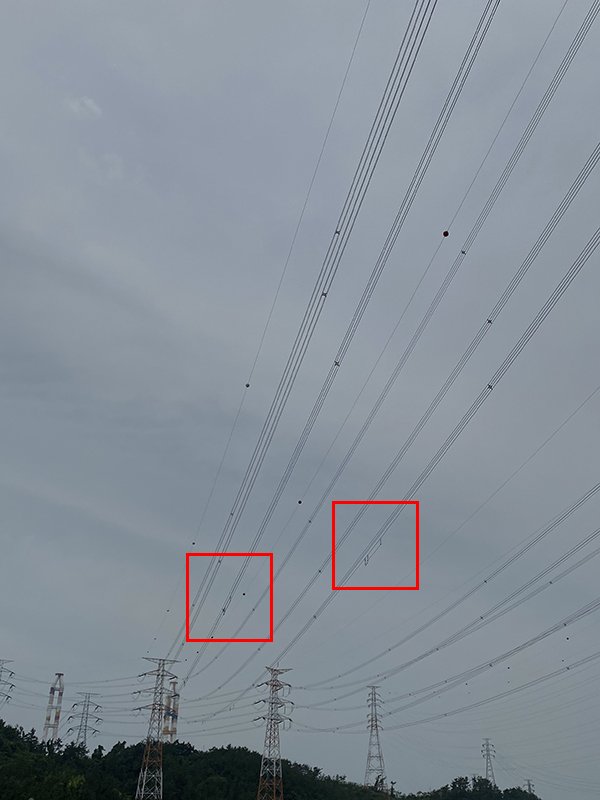 장치가 특이하다고 생각된 것은, 3상 모두에 설치된 것이 아니라 맨 아래쪽 전선에만 설치되어 있었기 때문이었다.