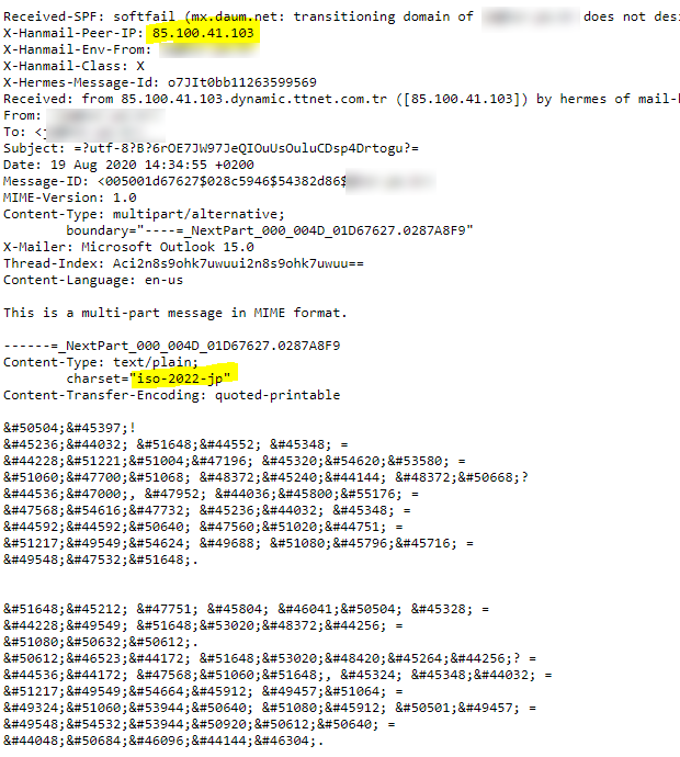 이 협박 메일은 터키에서 발송된 것이고, 한글을 모르는 사람이 번역기를 통해 한글로 번역을 했고, 그것을 유니코드 인코딩으로 보내온 것이라는 결론을 얻을 수 있다.