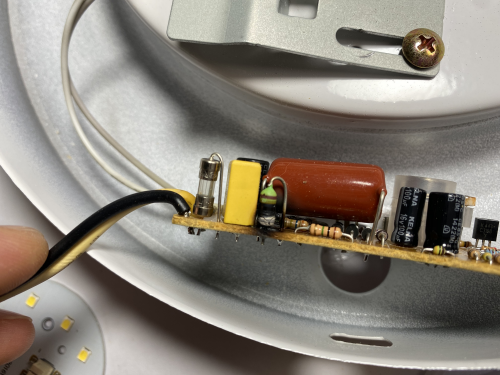 이와 같은 저가형 LED 드라이버회로의 경우, 콘덴서를 이용한 전류제한방식의 전원을 사용하는 경우가 많은데, 이렇게 사용하게 되면 돌입전류나 고주파 노이즈에 취약해진다.