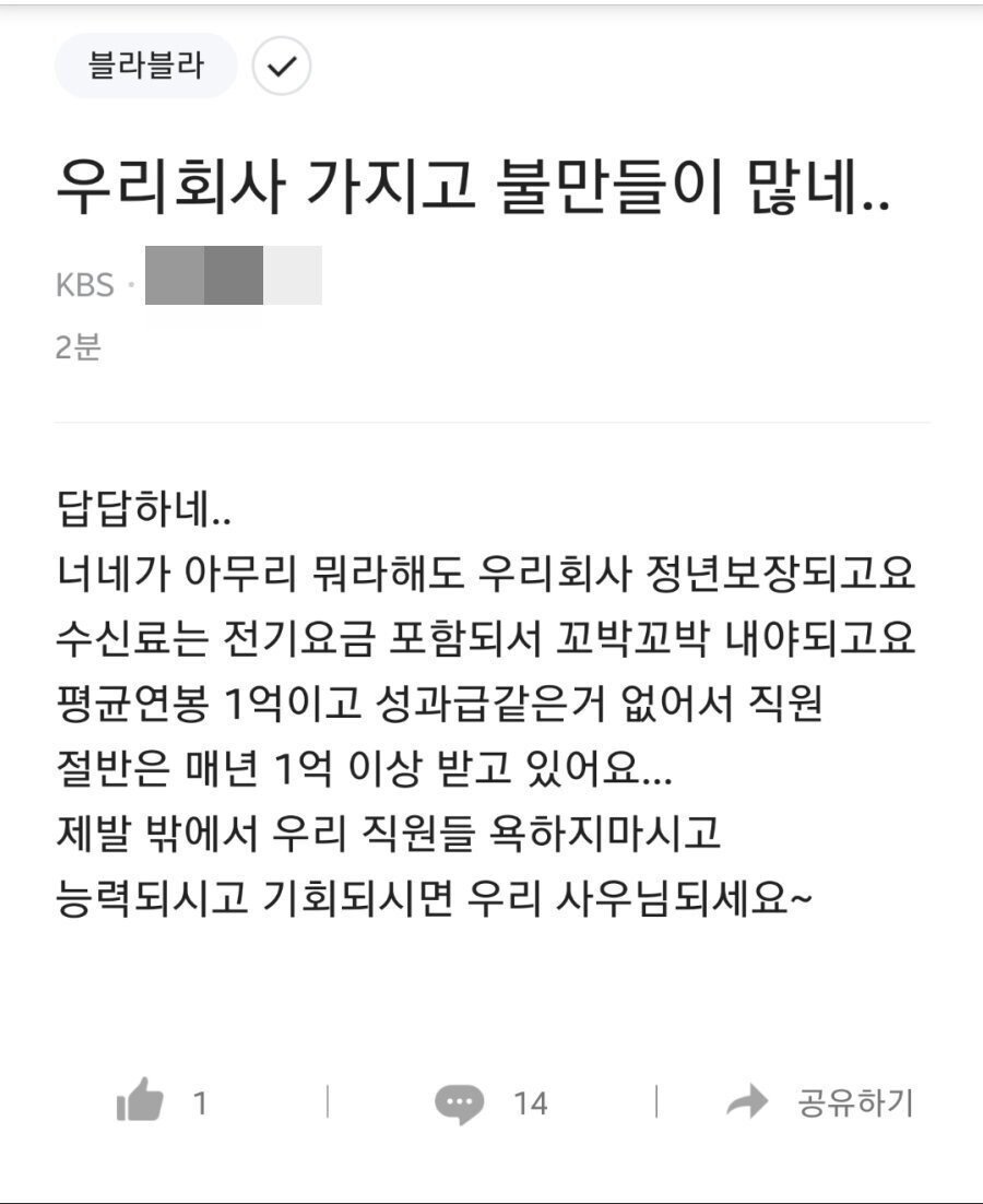 그렇게 능력있어서 KBS 입사했으면 수신료를 구걸할게 아니라 능력을 발휘해야 맞는 것 아닌가.