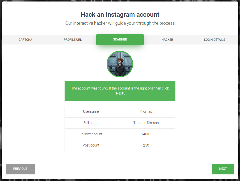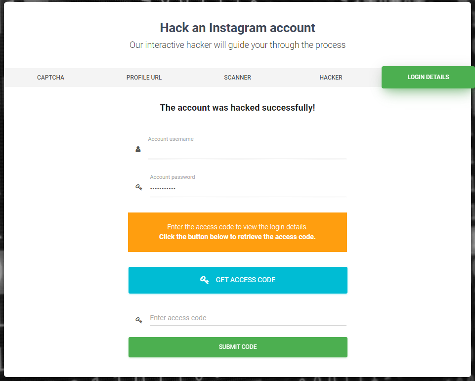 Hack Account 버튼을 눌러 보았다.