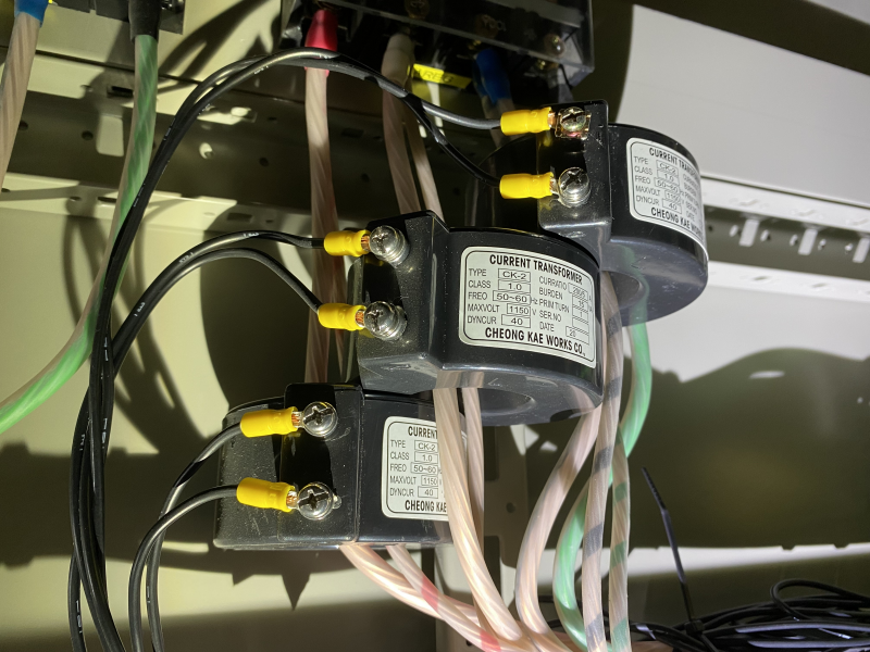 부하는 3상 4선식 220V / 380V 인데, CT 만 연결하여 전류 배율만 적용되었다.