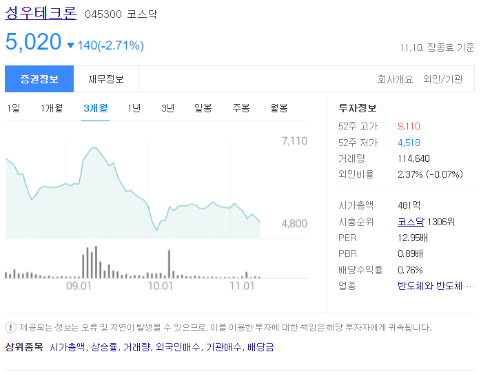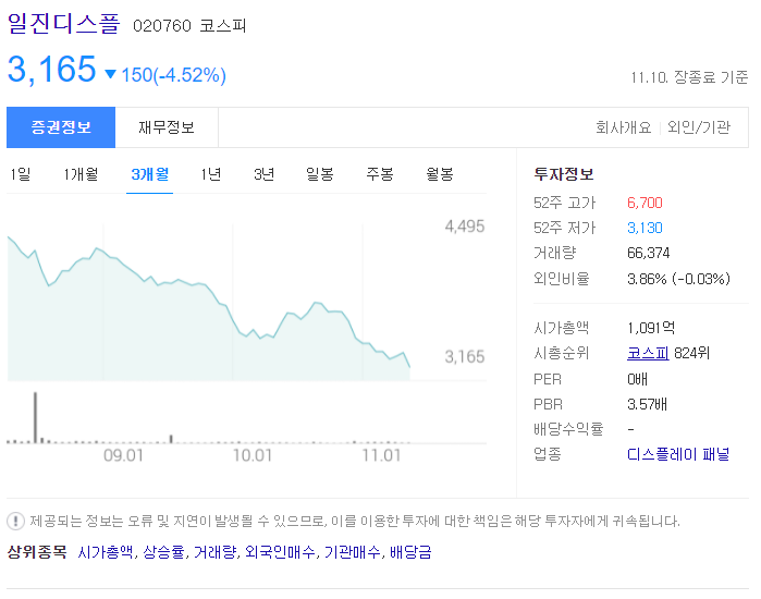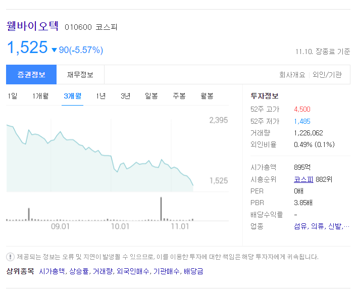약 3개월이 지난 시점에서 리딩방 스팸에서 추천한 종목을 검색해봤다.