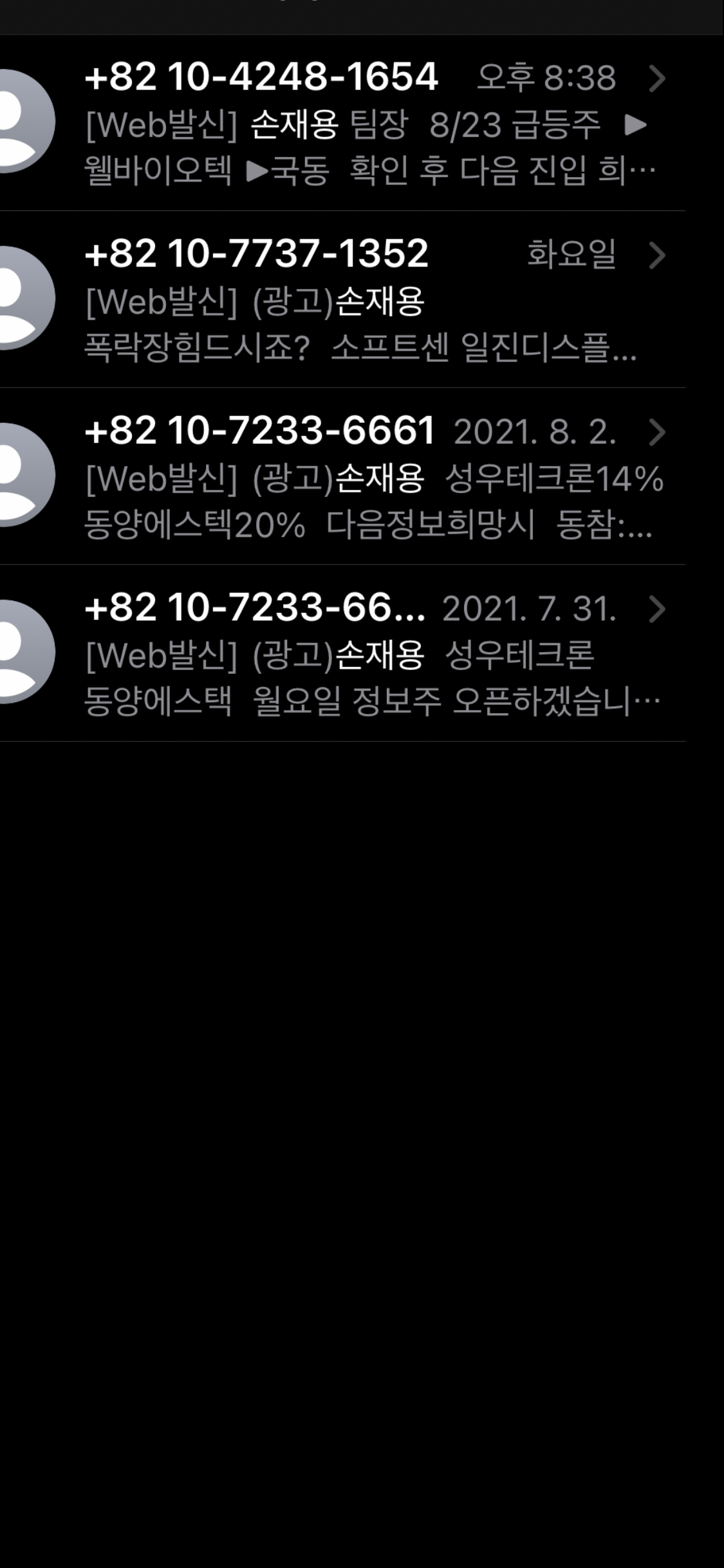 주식을 한 적도 없는데 갑자기 손재용이라는 놈에게서 주식 리딩방스팸이 조올라게 날아온다.