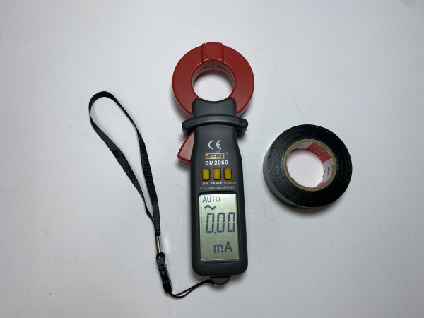 누설전류계의 클램프 크기를 확인하기 위해서 절연테이프와 비교를 하였다.