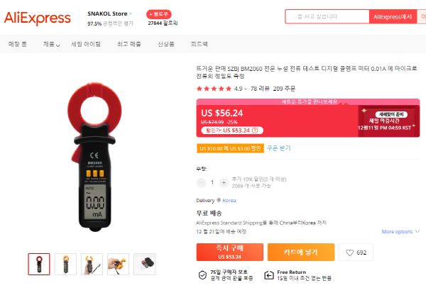 알리익스프레스를 둘러보다가 저렴한 누설전류계를 발견하였다.