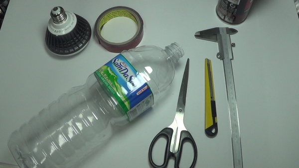 먼저 타겟으로 설정한 LED 전구보다 폭이 약간 더 큰 페트병을 준비한다. 그리고 그 조명과 지름이 거의 비슷한 원기둥을 준비한다. (여기서는 어느정도 사용한 양면테이프가 지름이 거의 같았다.)