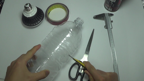 먼저 페트병을 잘라준다. 기준으로 사용할 테이프가 들어가고 약간 남을 정도의 길이로 잘라준다.