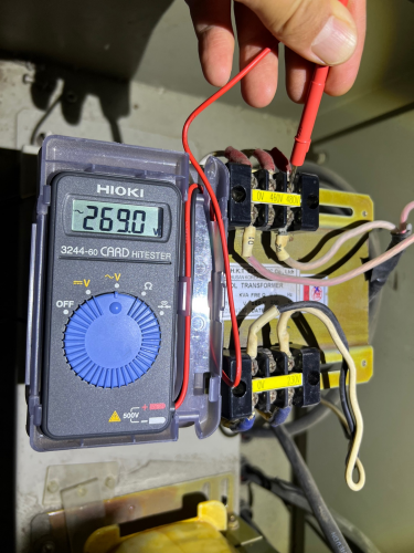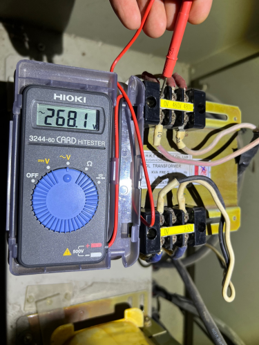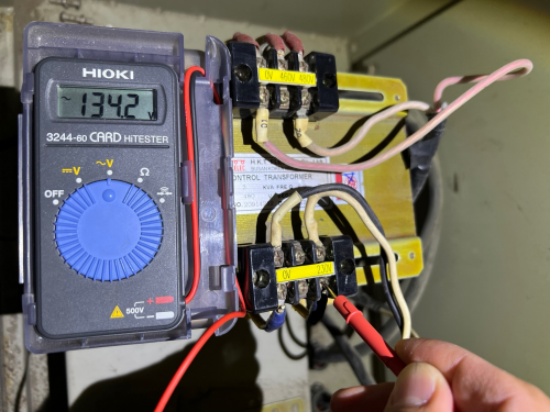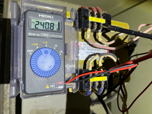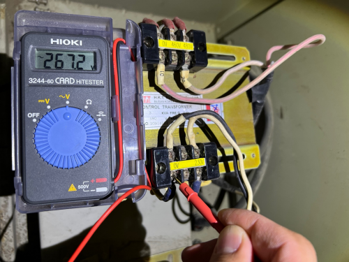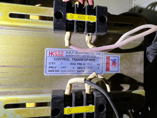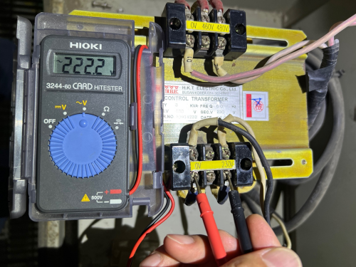 1차측 480V 단자와 2차측 230V 단자를 측정하니 1-2차 전압 차 만큼의 전압이 측정된다.