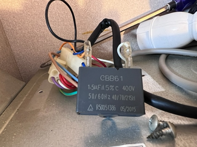 이 콘덴서가 불량인 경우 모터가 돌지 않거나, 웅 소리만 나면서 기동이 안되게 된다.