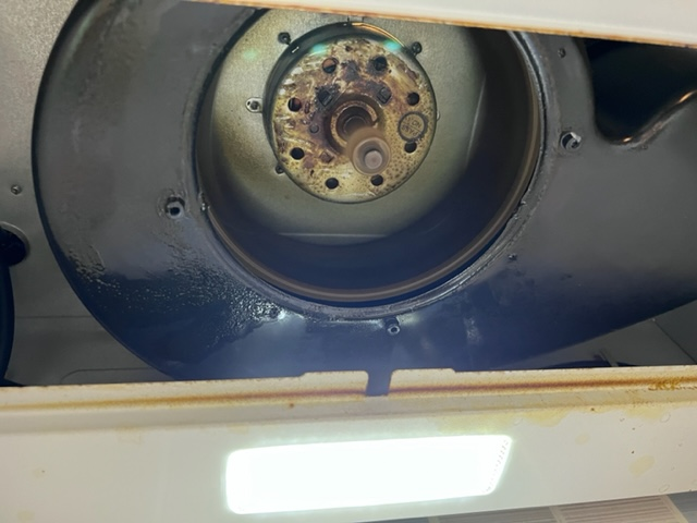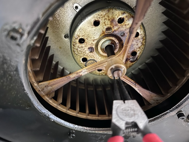 환기후드 석션측의 망을 분리하고, 블레이드를 모터에서 떼어내야 모터를 꺼낼 수 있는 구조였다.