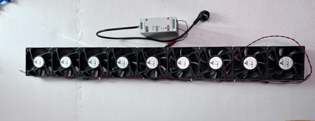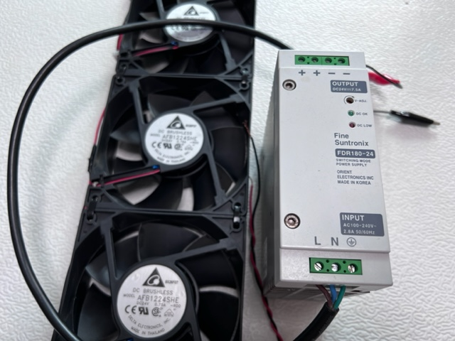 개별 쿨링팬의 사양은 DC24V - 0.75A 이다. 18W를 소비하며, 24V 쿨링팬 9개를 병렬로 하였으므로 162W 를 소비하게 된다.