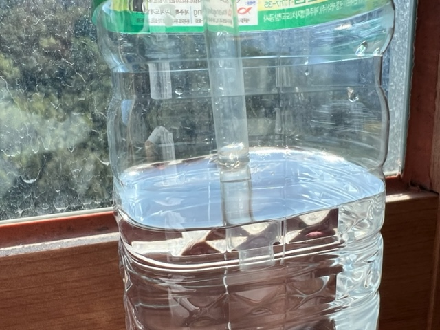 페트병에 물을 약간 채우고 호스 반대편을 물에 넣으면, 실내외 압력차에 따라 수주가 상승하게 된다.
