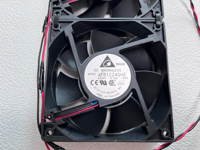 24V 를 사용하는 대규모 제어장치의 판넬 냉각팬이다. 교체주기가 되어 새것으로 교체하고 나온 중고품이다.