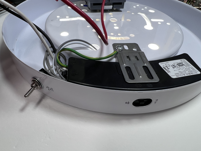 기존 플라스틱 형틀이 백열등용으로 제작되어서 그런지, 출력측 전선 구멍으로 전선을 정리할 수 있었다.