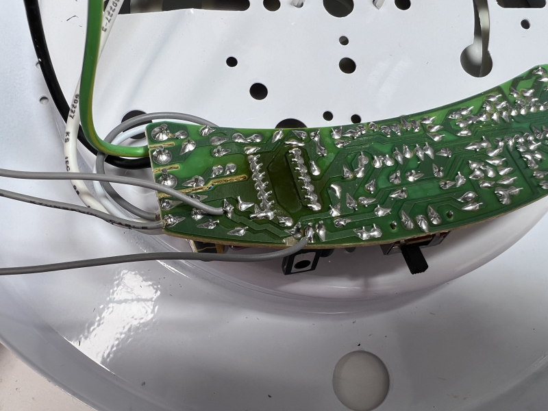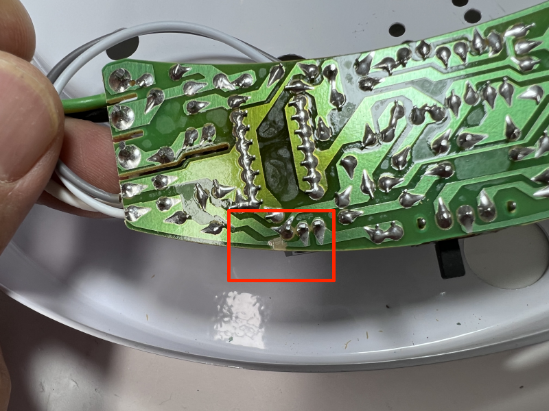 상시점등으로만 계속 사용할 것이라면 납땜을 통해서 트랜지스터의 C-E 를 서로 연결해주면 되나, 센서등 기능으로의 전환도 필요하므로 PCB 에 전선을 납땜하여 밖으로 빼낸다.