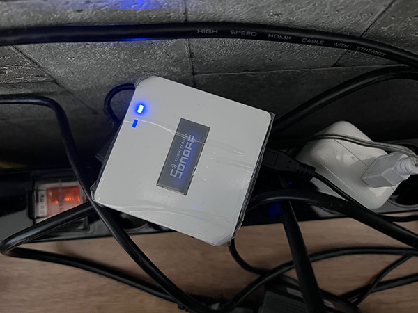 그리고 안 쓰는 휴대폰 충전기 등을 이용하여 5V 전원을 공급하고, 가구 뒤쪽의 멀티탭 등에 연결하여 보이지 않도록 한다. (일단 연동되면 이 장치를 조작할 일이 없다.)