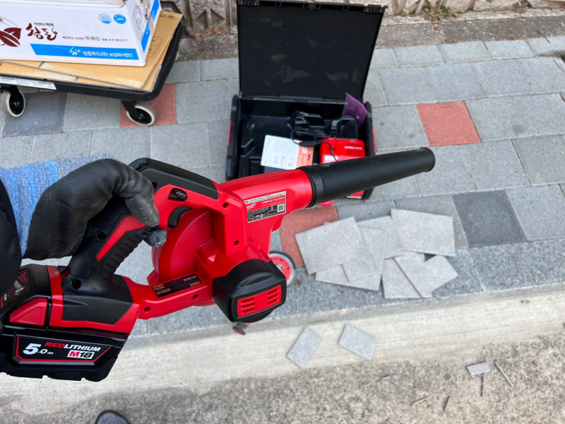 타일을 자를 때에는 먼지가 많이 난다. 작업 후 먼지를 털기 위해서 그라인더와 배터리가 호환되는 밀워키 블로워도 같이 구매했다.