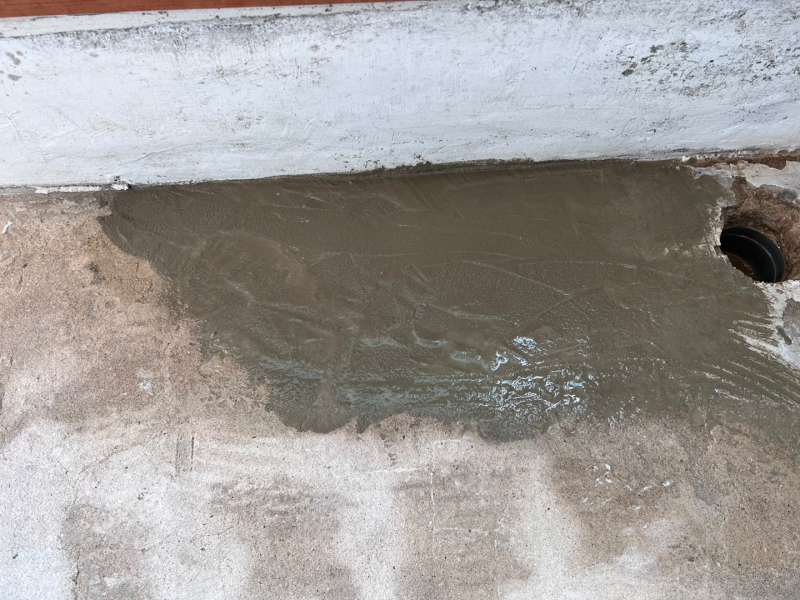 물이 고여있는 모양을 참조해서 시멘트로 돋궈줘야 한다. 과거 욕실 보수를 하고 남은 시멘트를 이용하여 돋궈주었다.