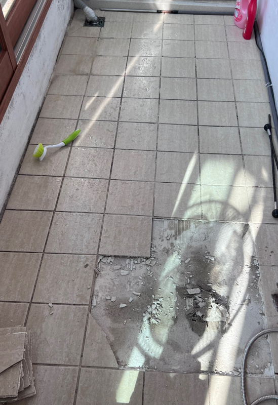 계절이 여러번 바뀌며 소리가 점점 심해지더니, 타일 일부가 분리되어 따로 놀기 시작하였고, 들뜸 범위를 확인해 본 결과 약 70% 정도가 들뜬상태였다.