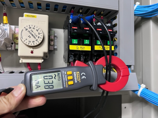 전에 구매한 누설전류계를 이용하여 누설전류를 측정해 보니, 릴레이가 떨어졌을 때 0.3mA의 누전이 발생하고 있다.
