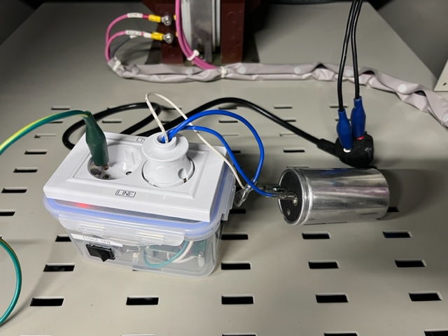누전차단기가 연결되지 않은 전원이므로 콘덴서를 이용하여 주기적 누전을 발생시키고, 누전이 발생하는 변압기를 찾아보기로 했다.