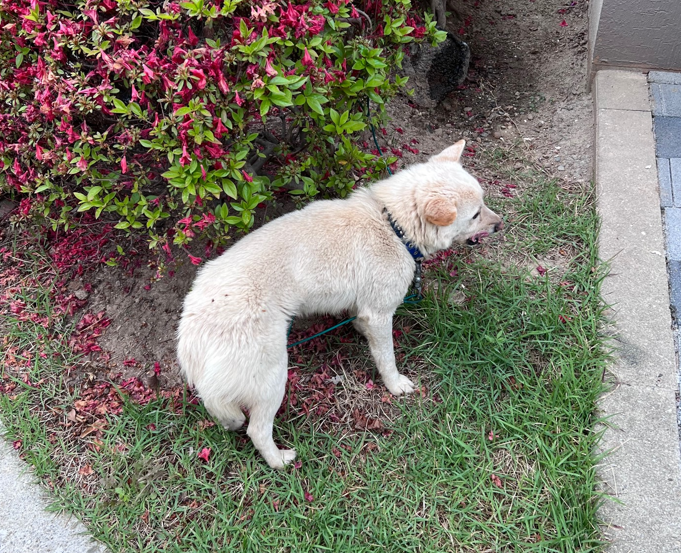 목줄이 풀린 채로 돌아다니다가 잡혔다는데.. 동네에서 처음 본 개였다.