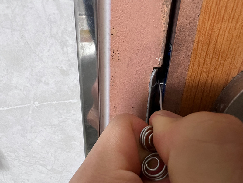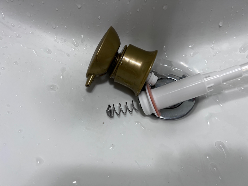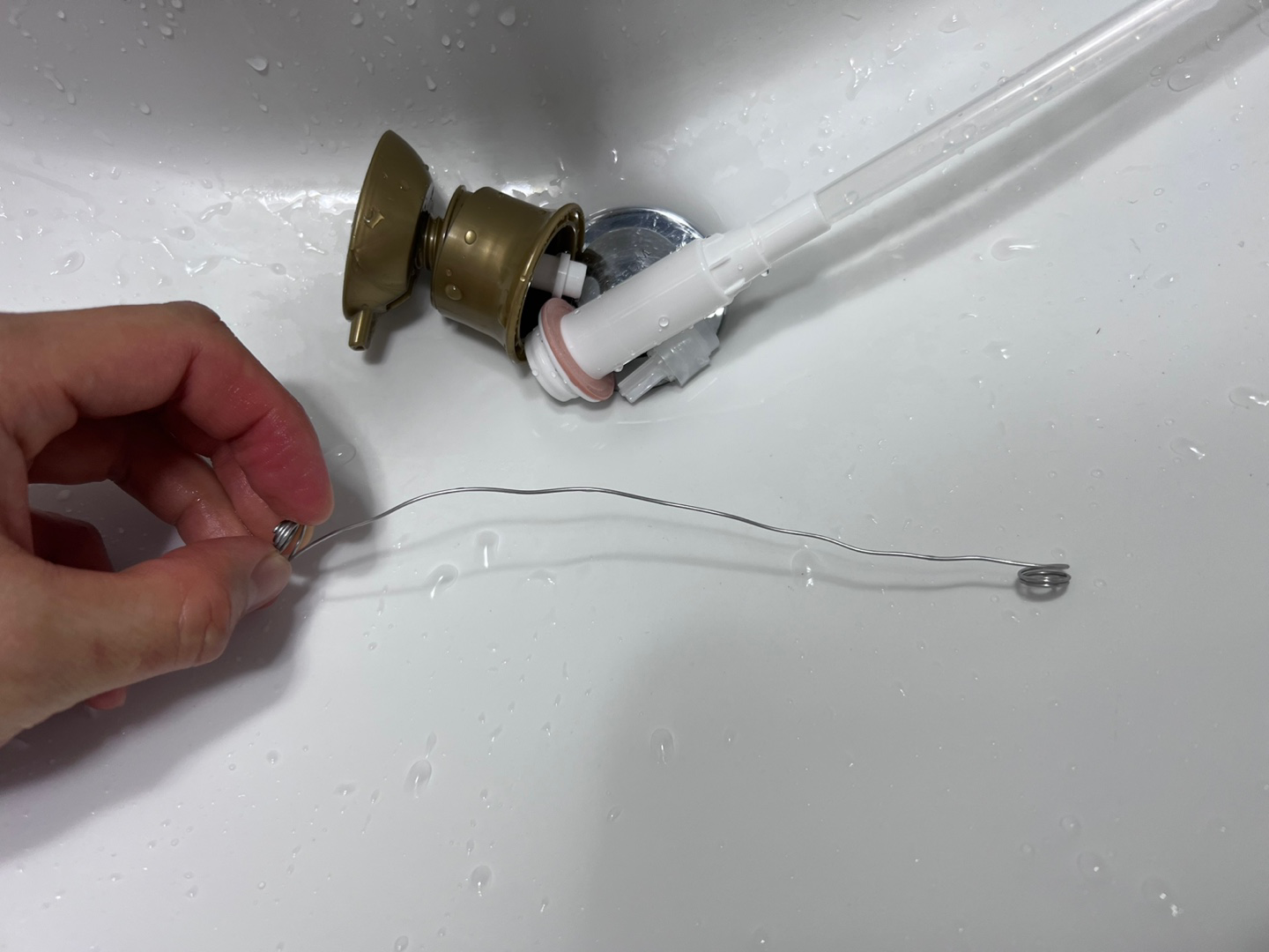 일단 스프링을 길게 펴 준다. 욕실 안에서는 공구가 없기 때문에, 공구를 이용하지 않고 손으로만 길게 펴 보았다.