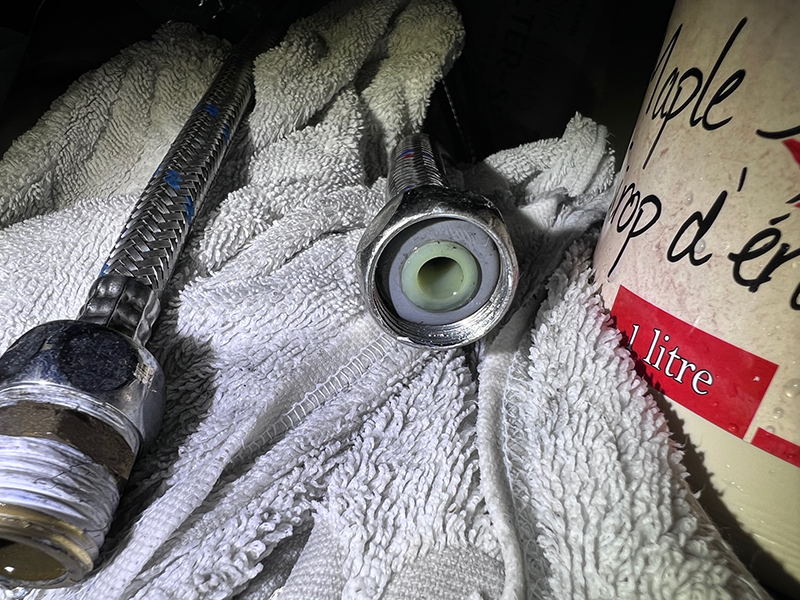 주방 인테리어를 하면서 수전의 위치를 기존의 위치에서 2m 정도 이동시켰는데, 벽에 있는 배관으로부터 후렉시블 수도관을 통해서 수전에 연결되면서 이음새가 상당히 많이 생겨난 것이 원인일 것 같았다.