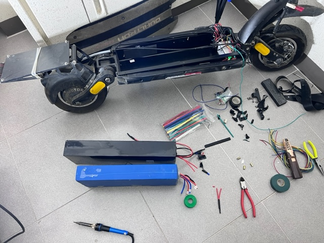 전동킥보드 유지보수를 전문적으로 하시는 분에게 의뢰한 것이라서, 크기가 약간 커도 장착은 가능하리라 생각되었으나, 내부에 자작 회로들을 추가한 상태라 이 회로들을 전부 다 밖으로 빼내야 하는 상황이 되었다.