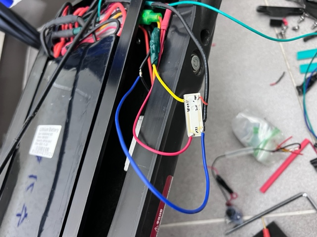 킥보드 내부 회로 중에 12V 를 사용하는 부분이 있는 모양인지, 12V 상시전원이 어디론가 연결되어 있었다.