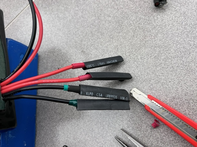 배터리를 킥보드에 장착하기 전에 혹시 모를 단락사고 예방을 위하여 전극 부분은 수축튜브로 감싸주었다. 배터리 자리에 넣다가 단자가 단락(합선)될 수 있다.