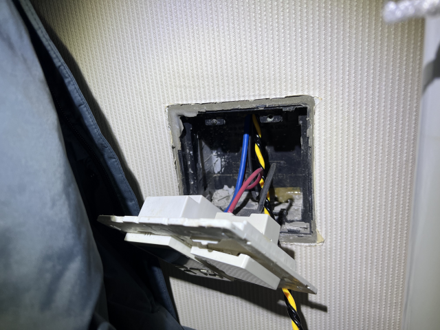 스위치 커버를 열고, 전등 라인에 요비선을 집어넣는다. 전등까지 대략 3m 정도 되므로, 어느 정도 들어가다가 뭔가 걸리는듯 하면 전등쪽 단자박스를 확인해야 한다.