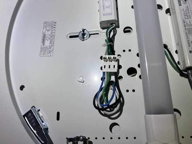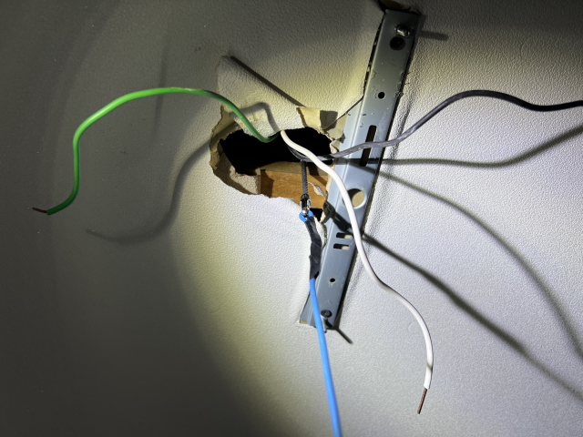 Lin 에는 핫상(Line) 을 연결하고, Lout 에는 전등에서 스위치로 가는 선을 연결한다. 중성선 단자인 N 단자에는 새로 포설한 청색 선을 연결해주었다.