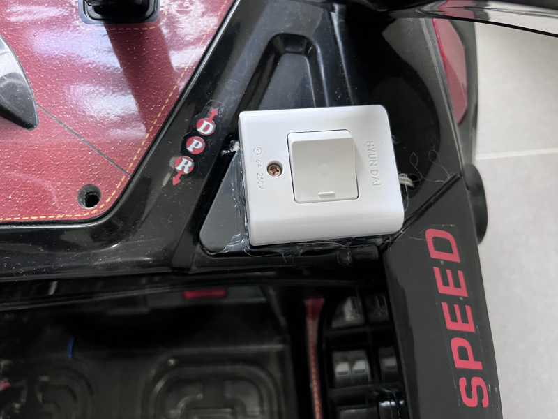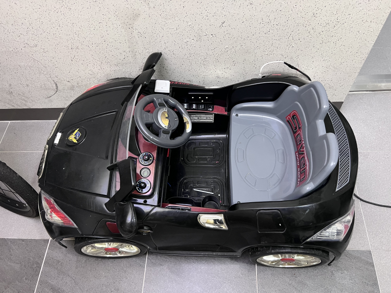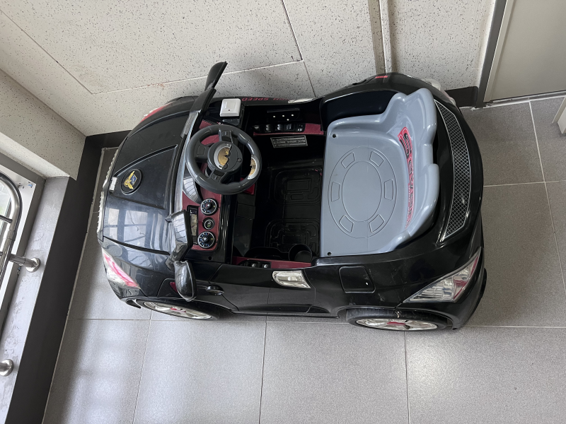 이전에 살던 사람이 버려두고 간 것인데, 리모컨으로 조종이 되는 방식인 듯 하고, 12V 납 축전지로 동작되는 장난감 자동차 이다. 충전기도 없었다.