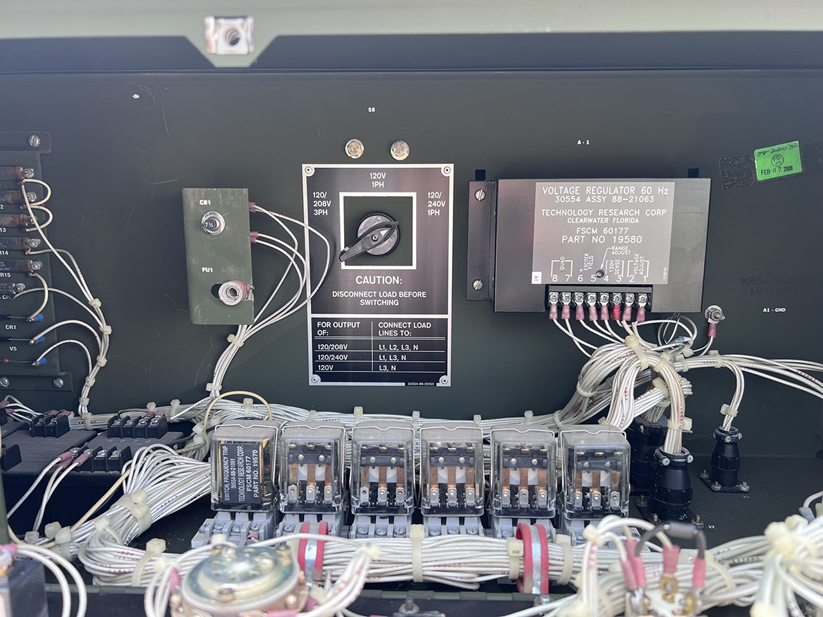 미군에서 사용하는 MEP-803A 라는 모델명을 가진 디젤발전기 였는데, 미국에서 만든 것이라서 그런지 120/208V 60Hz 3PH 4WIRE 가 기본 출력이었고, 전환스위치를 조절하면 단상 3선식 120/240V 의 전원도 사용이 가능한 방식이었다.